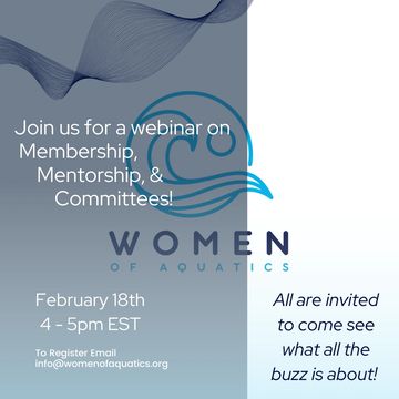A webinar to learn more about Women of Aquatics' membership, mentorship program, and committees we have to offer. Learn how you can get more involved! This webinar is open to everyone - NOT just members.